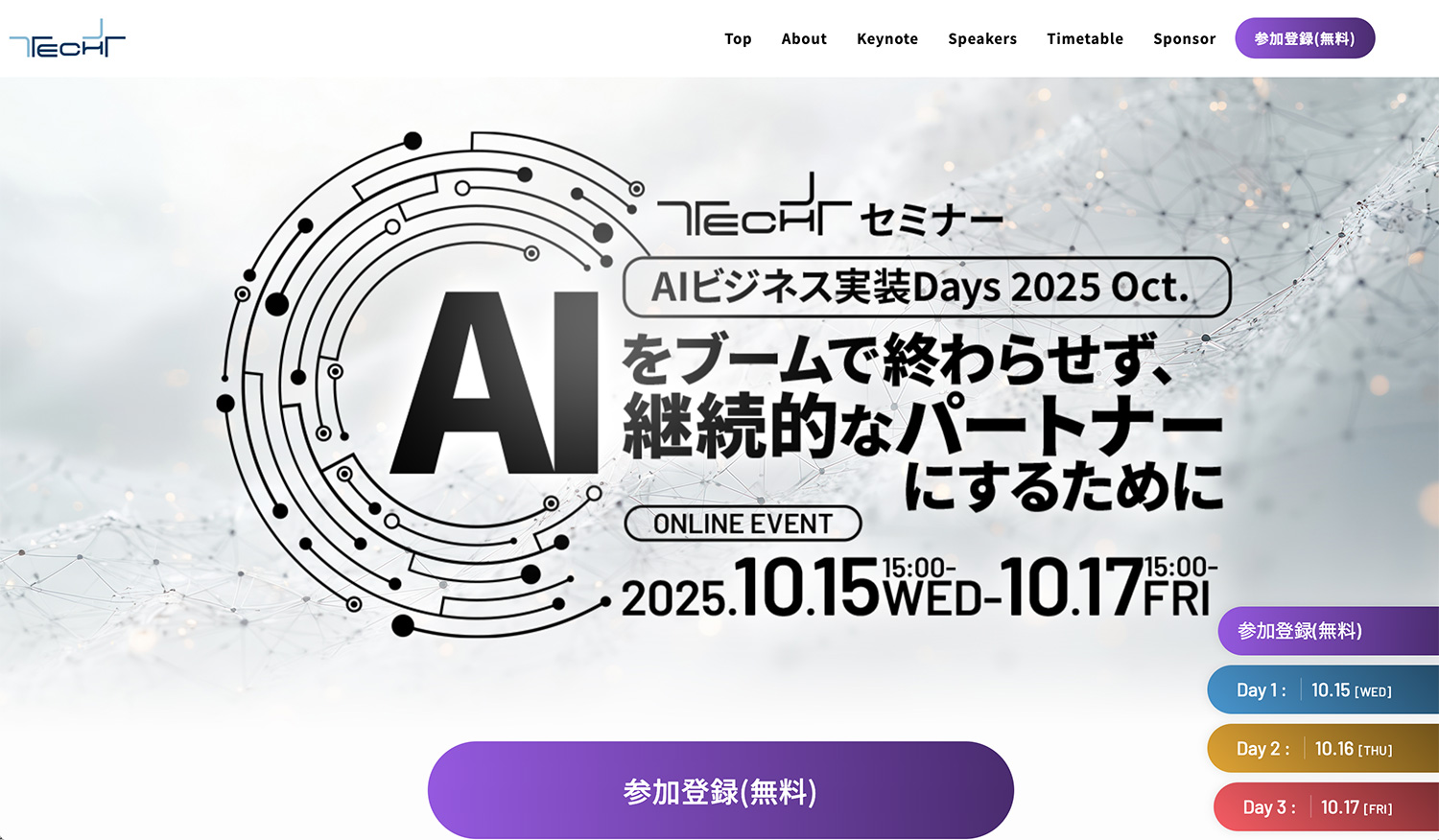 CEO・石角友愛が『TECH+ セミナー AIビジネス実装Days 2025 Oct. 「AIをブームで終わらせず、継続的なパートナーにするために」』に登壇します。詳細は以下のURLをご覧ください。