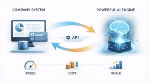 近年のAIサービスの開発は外部APIを活用する形が主流です。高度なAIモデルを自社で持たずとも、短期間でサービスを構築できることから、多くの企業がこの手法を採用しています。